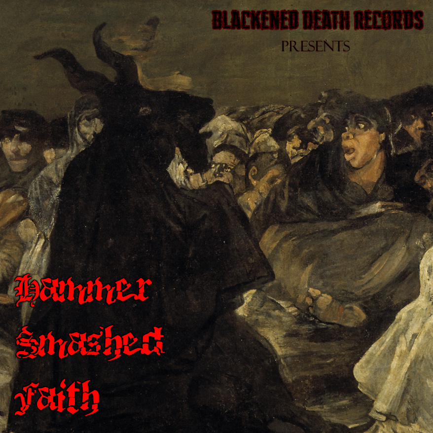 If there was ever a compilation from a newly formed record company that really knows the underground scene then Blackened Death Records is that company. Also a reference to Cannibal Corpse’s most famous song can never hurt, and it works really well in the situation. There are 13 bands in total whose genre ranges from death metal to neofolk to thrash metal to black metal. Basically, Blackened Death Records found some quality underground bands, chose what I assume to be the best songs that they had to offer, and then put the together into one solid and intense compilation. Each song is its own trip and they fully embrace their genres to the point where within 20 seconds of each track I was able to identify the genres of most of the songs. They also have a strange flow as one song goes into the next as no genre is repeated twice in a row (that I could detect, at least). And I obviously haven;t heard the vast majority of bands off of this compilation so each song provided me with a nice intro into plenty of different bands that I may check out later. “Hammer Smashed Faith” is a really nice compilation for underground extreme metal bands that shows that Blackened Death Records know the underground a fair bit and know the talent of it. I’d be very interested to see what kinds of bands they sign and compilations they create in the future.