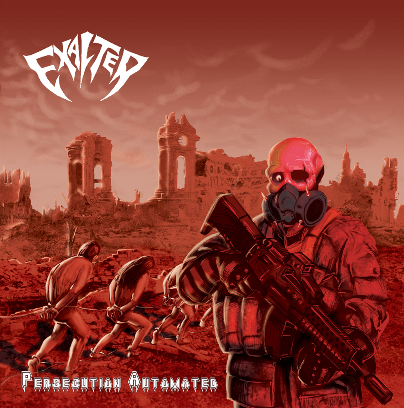 Hailing from Bangladesh, Exalter returns to us to provide even more irrefutable proof that Asia truly does have a menagerie of talented acts to call its own in many forms with its own kings. Black metal has Rudra, death metal has pieces like Primitiv, the progressive side gets Rectified Spirit, and thrash gets Exalter and it couldn’t be a better fit. Drawing from old school thrash that does everything right, Exalter’s upcoming album, “Persecution Automated”, doesn’t rock the boat too much by changing a classic formula but instead simply plays thrash the band grew up with, and its execution is immaculate. The whole of “Persecution Automated” launches with a bit of a slow start, but it’s one that slowly prepares you for the oncoming assault of speed and rhythm that’s pulled off spectacularly by this duo. I never knew that Exalter was a duo until hearing this record, and that makes me appreciate “Persecution Automated” even more. This album really brings together all the tropes of thrash metal very well from having a vicious take on society as a whole while still bringing the heavy in spades as well as speed to keep your heart racing the entire time. Nothing new for thrash metal after decades of it being done, but Exalter manages to keep things interesting and not become another blatant Slayer or Exodus rip-off that we see all too often. Instead, this band brings their own special flavor that adds to the enjoyment of this record and it truly carries the piece from start to finish.