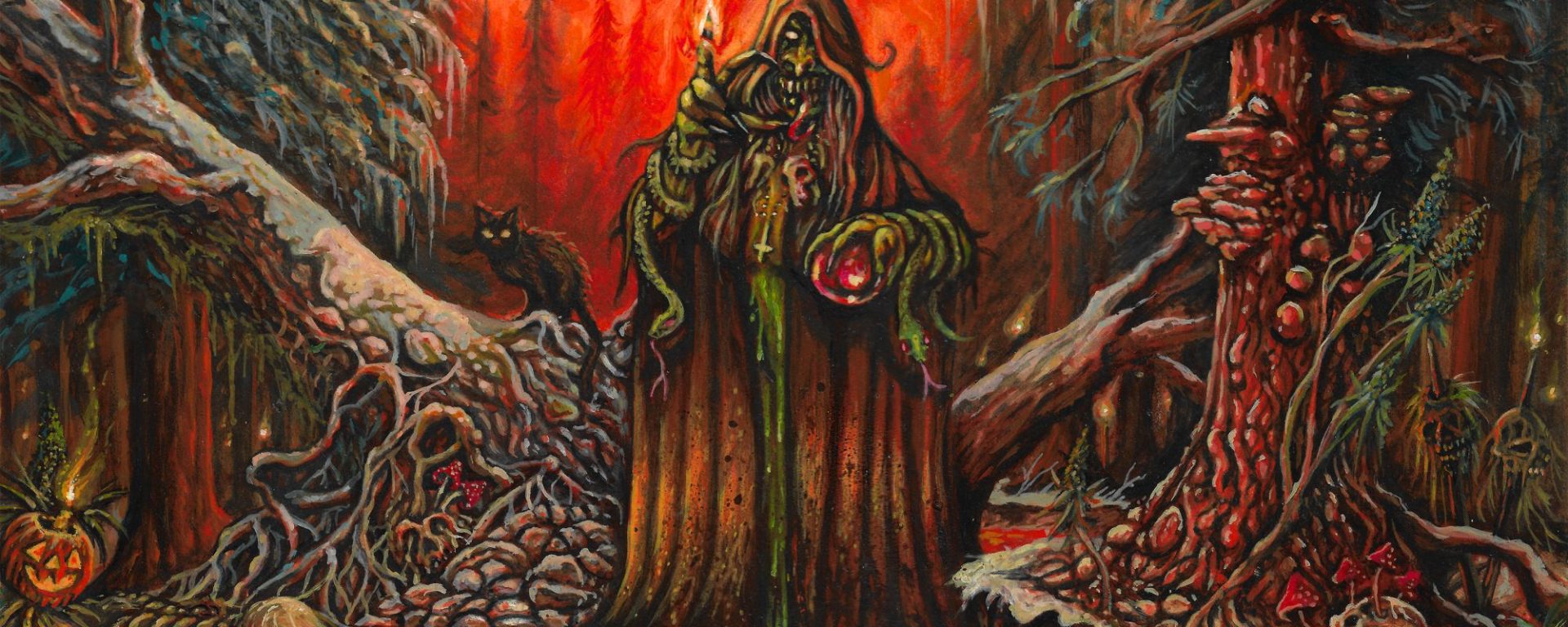 With just two full-lengths under their belt along with a growing reputation that leaves them in quite a spot in the underground that many would consider being coveted, the situation that Acid Witch finds themselves in here is certainly commendable by all accounts. It’s the sort of thing that immediately sets them apart from much of the scene when it comes to quality, their overall approach, and flavors that manages to pull from the realms of death metal and horror media in a largely doom form that is brought together with such aptitude and talent that it blows back the listener instantly. For all that’s brought forth with “Rot Among Us”, it’s clear that Acid Witch still has grand new heights to achieve despite all that they’ve already accomplished. Pick any track from the ten that are offered to us here in this new opus and any one of them would be able to stand proud and tall as the lead single for this record is not just entertaining, but the next step in the very evolution of Acid Witch’s sound that is already tempered to a satisfyingly deadly edge. Every piece of their sound has a spot to be played loudly for the very whole of this creation whether it’s weird and atmospheric or heavy and rhythmic, “Rot Among Us” is the closest we’ve ever been to the very soul and driving force of Acid Witch. Hypnotic at every turn and a downright joy to get lost in, the woods that ring with the sound of “Rot Among Us” are as devilishly entrancing as one could hope for, and I’ve no doubt that Acid Witch still has plenty of tricks up their sleeves to dazzle and amaze us with.