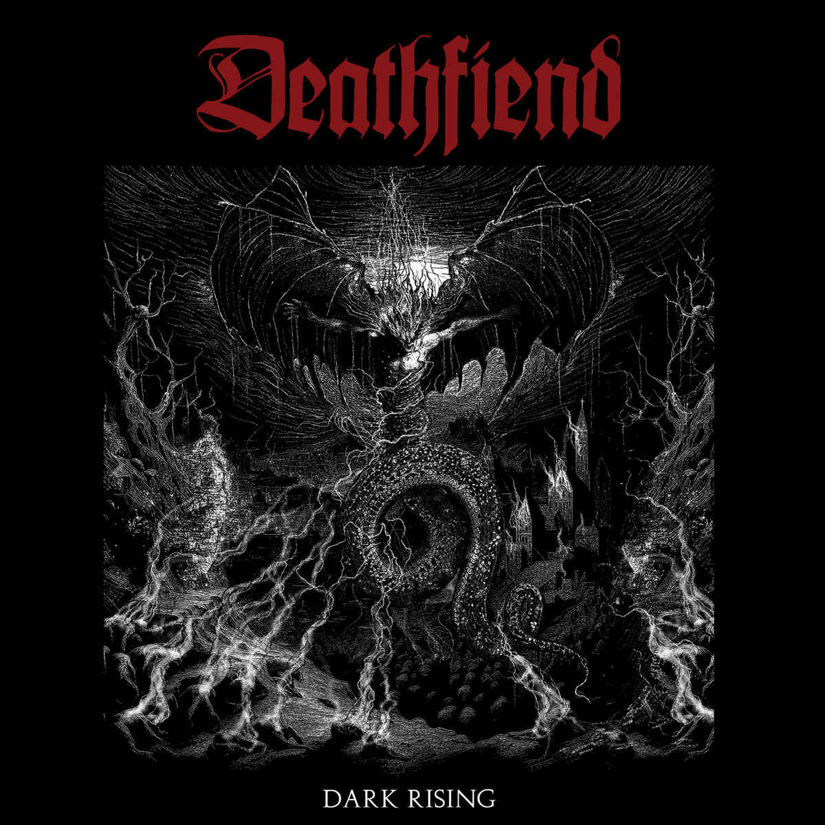 No longer is it a true oddity to see a band come around and dare to combine the tendencies of many different styles into one writhing creation that dares to tap into the power from many different sides to bring about an effort that can become so much more should it simply be crafted by hands that know precisely what kind of volatility they’re dealing with. To gaze upon practically every given track that Deathfiend delivers within “Dark Rising” is to realize that this quartet is more than capable and delivers sinister glory at virtually every given turn without compromise nor do they ever miss an opportunity to deliver hellfire and madness on a terrifying scale. A clear love letter to metal of the old school without ever once falling firmly into a single style to make for a truly writhing and dense creation, “Dark Rising” offers much to every listener as the act demonstrates a fascinating level of understanding of its vision on what’s only its second EP. A thriving bastion of that old school which many people have come to worship with nothing short of real aptitude and capacity as the driving force to make this work something to be admired, Deathfriend makes its known over and over again throughout this creation precisely why they’re at a level seperate from much of the others in the vast underground.